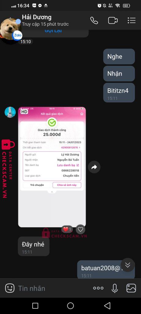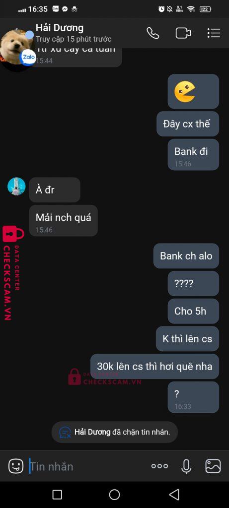 Scammer Alert: Lý Hải Dương Reported: November 16, 2024 Scammer Information Full Name: Lý Hải Dương Phone Number: 0359215313 Payment Gate: Momo Payment Account: 0359215313 Category: Marketplace scams Source: Checkscam Evidence Files Report Description 30k cũng scam né ! Comments Your comment Add Comment No comments yet. Be the first to share your experience with this scammer.