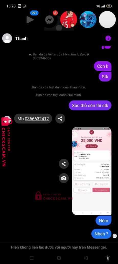 Scammer Alert: Lý Hồng Ngọt Reported: November 16, 2024 Scammer Information Full Name: Lý Hồng Ngọt Phone Number: 0366632412 Payment Gate: Mb Bank Payment Account: 0366632412 Category: Marketplace scams Source: Checkscam Evidence Files Report Description Scam 25k rácc Comments Your comment Add Comment No comments yet. Be the first to share your experience with this scammer.