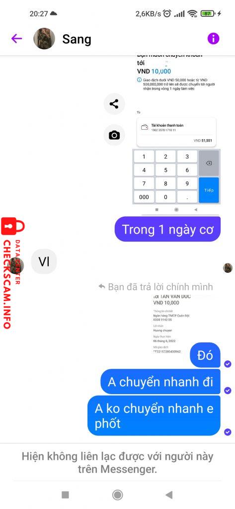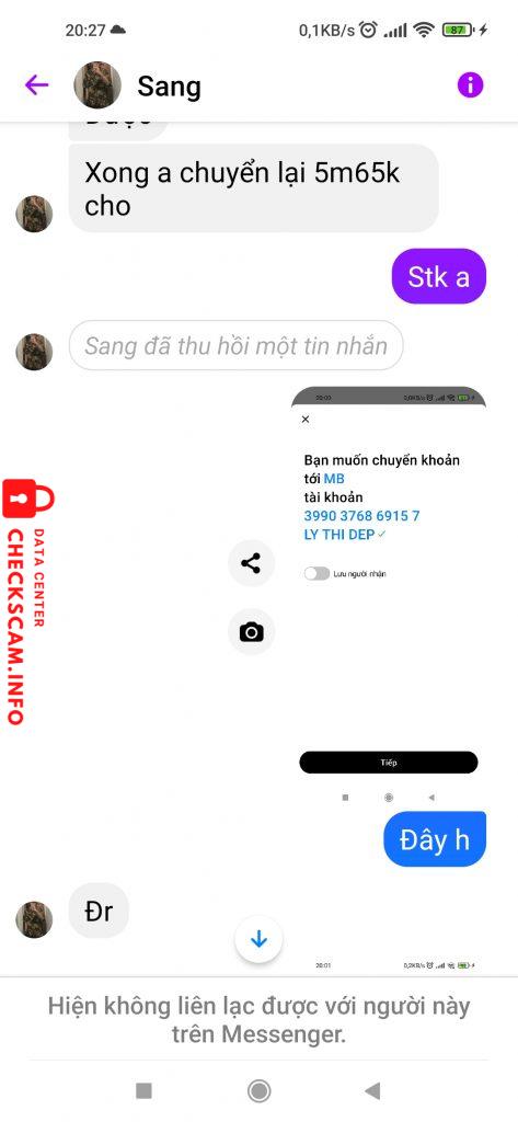 Scammer Alert: Ly thi dep Reported: November 16, 2024 Scammer Information Full Name: Ly thi dep Phone Number: 0338914205 Payment Gate: Mp bank Payment Account: 3990376869157 Category: Marketplace scams Source: Checkscam Evidence Files Report Description Scam Comments Your comment Add Comment No comments yet. Be the first to share your experience with this scammer.