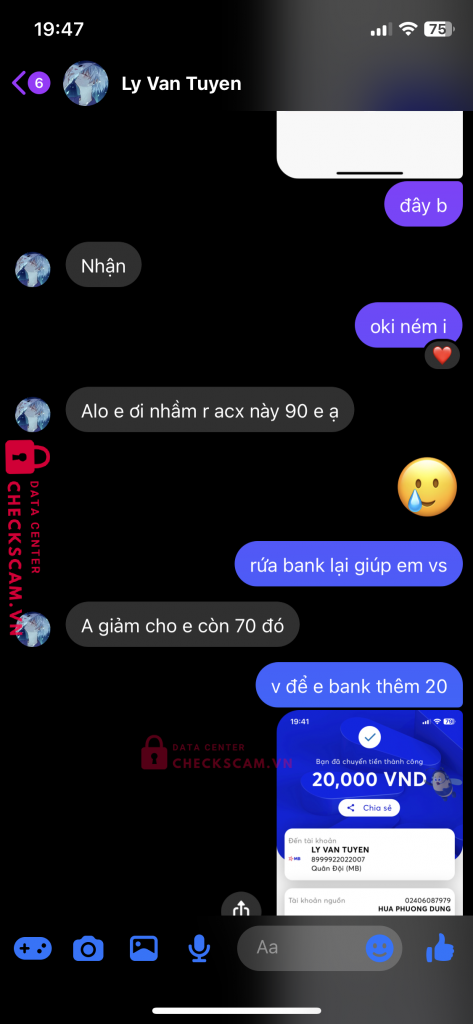 Scammer Alert: Ly Van Tuyen Reported: November 16, 2024 Scammer Information Full Name: Ly Van Tuyen Payment Gate: mb bank Payment Account: 8999922022007 Category: Marketplace scams Source: Checkscam Evidence Files Report Description kêu bank xong ko gửi =)) scam nhé Comments Your comment Add Comment No comments yet. Be the first to share your experience with this scammer.