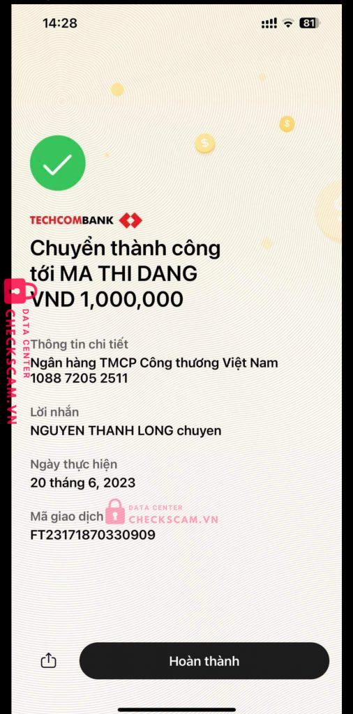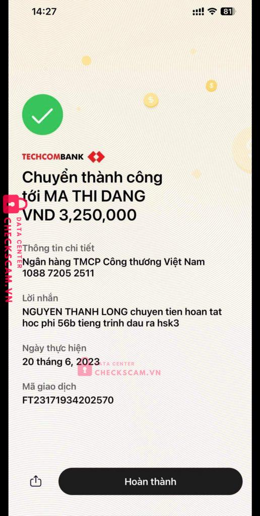 Scammer Alert: MA THI DANG Reported: November 16, 2024 Scammer Information Full Name: MA THI DANG Payment Gate: Vietinbank Payment Account: 108872052511 Category: Marketplace scams Source: Checkscam Evidence Files Report Description Lừa đảo học phí học tiếng Trung Comments Your comment Add Comment No comments yet. Be the first to share your experience with this scammer.