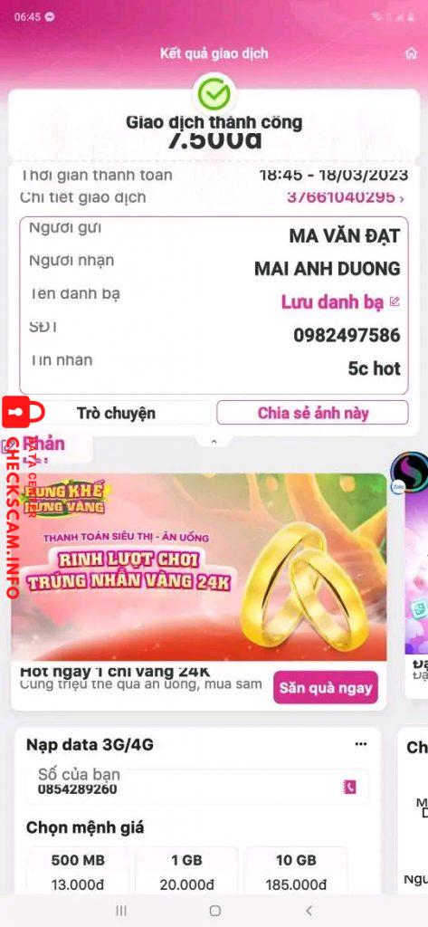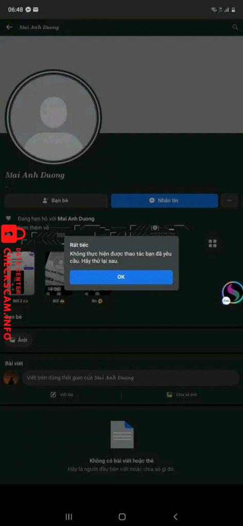Scammer Alert: Mai Anh Duong Reported: November 16, 2024 Scammer Information Full Name: Mai Anh Duong Phone Number: 0818638485 Payment Gate: MoMo Payment Account: 0818638485 Category: Marketplace scams Source: Checkscam Evidence Files Report Description scam rách 7,500đ , nó nhiều sđt lắm anhem lưu ý Comments Your comment Add Comment No comments yet. Be the first to share your experience with this scammer.