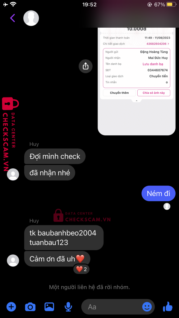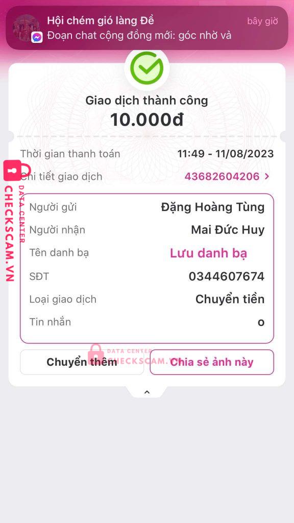 Scammer Alert: Mai Đức Huy Reported: November 16, 2024 Scammer Information Full Name: Mai Đức Huy Phone Number: 0344607674 Payment Gate: MB Bank Payment Account: 0344607674 Category: Marketplace scams Source: Checkscam Evidence Files Report Description Scam Comments Your comment Add Comment No comments yet. Be the first to share your experience with this scammer.
