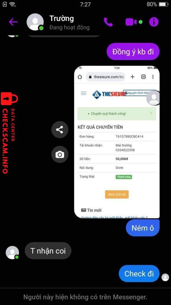 Scammer Alert: Mai Trường Reported: November 16, 2024 Scammer Information Full Name: Mai Trường Phone Number: 0901937691 Payment Gate: Thesieure.com Payment Account: 0901937691 Category: Marketplace scams Source: Checkscam Evidence Files Report Description Scam lừa đảo Comments Your comment Add Comment No comments yet. Be the first to share your experience with this scammer.