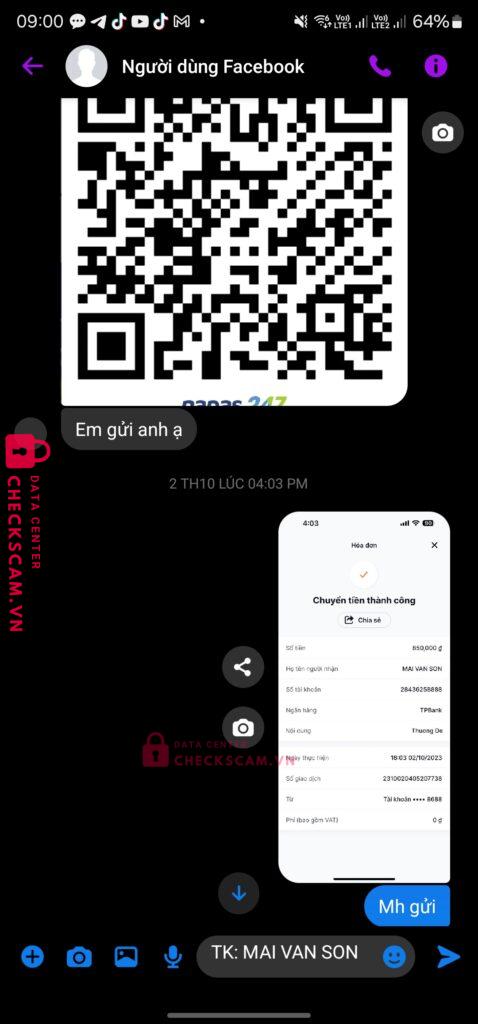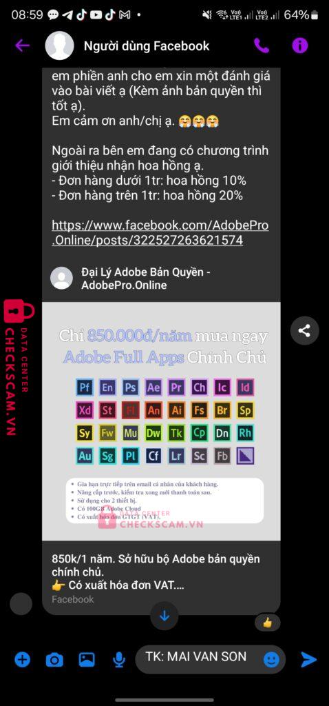 Scammer Alert: Mai Van Son Reported: November 16, 2024 Scammer Information Full Name: Mai Van Son Payment Gate: Tp Bank Payment Account: 284.3625.8888 Category: Marketplace scams Source: Checkscam Evidence Files Report Description Mua adobe 1 năm, dùng được 2 tuần giờ bị khoá. Fanpage liên hệ cũng xoá. Comments Your comment Add Comment No comments yet. Be the first to share your experience with this scammer.
