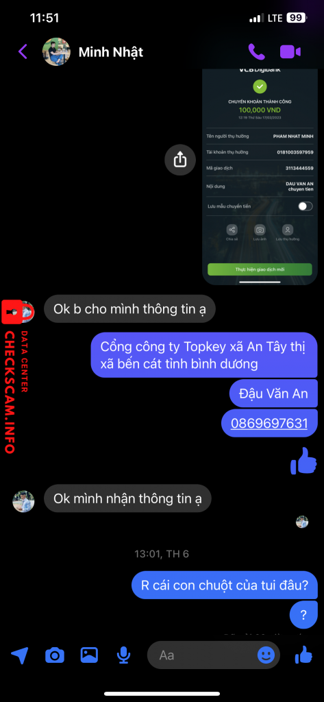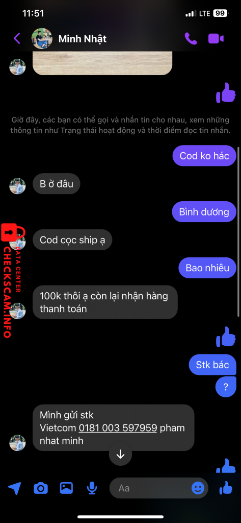 Scammer Alert: Minh Nhật Reported: November 16, 2024 Scammer Information Full Name: Minh Nhật Payment Gate: Vietcombank Payment Account: 0181003597959 Category: Marketplace scams Source: Checkscam Evidence Files Report Description Scam Comments Your comment Add Comment No comments yet. Be the first to share your experience with this scammer.