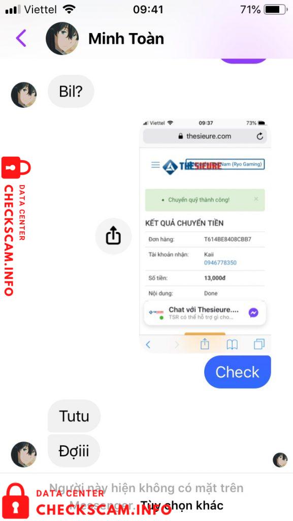 Scammer Alert: Minh Toàn Reported: November 16, 2024 Scammer Information Full Name: Minh Toàn Phone Number: 0946778350 Payment Gate: 0946778350 Payment Account: 0946778350 Category: Marketplace scams Source: Checkscam Evidence Files Report Description Scam 13k và rất nhiều người Comments Your comment Add Comment No comments yet. Be the first to share your experience with this scammer.