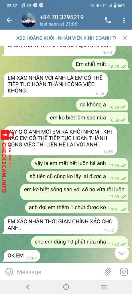 Bạn đầu mình aplly vào vị trí kế toán, công tỷ này gọi mình đặt lịch phỏng vấn và hẹn hôm này training onl, lúc đầu vào người ta cho mình chơi những cái nhỏ kiếm đc 8 9 trăm, ai ngờ sau đó lại cho chạy chương trình sổ số, số tiền đầu tư càng ngày càng cao mình ko theo kịp và giờ từ 1 đứa sinh viên nghèo vừa ko có công việc vừa nợ 15 triệu, giá như tôi tỉnh táo hơn giờ đến tiền ăn cũng ko có