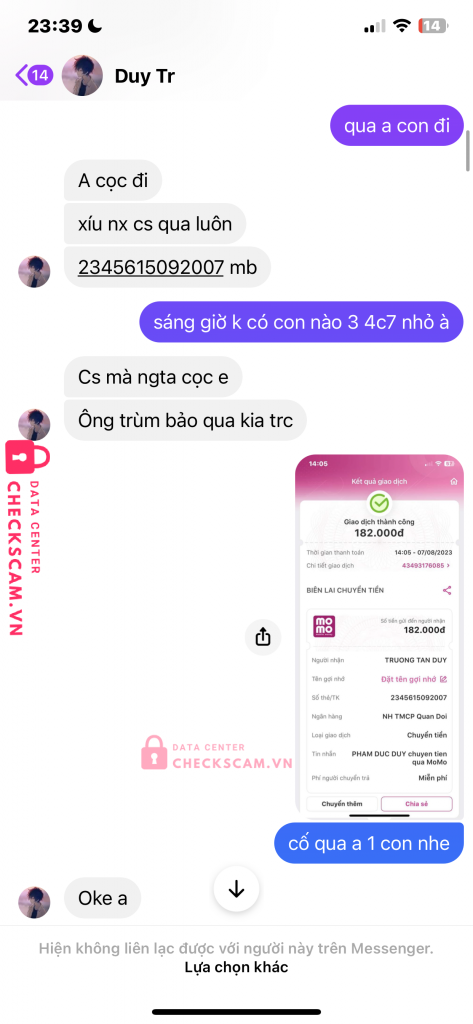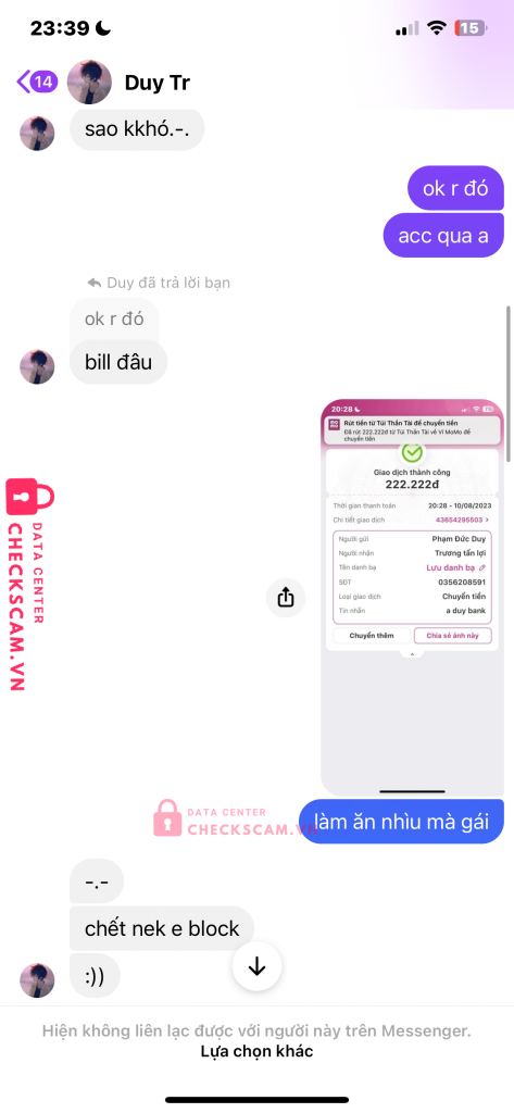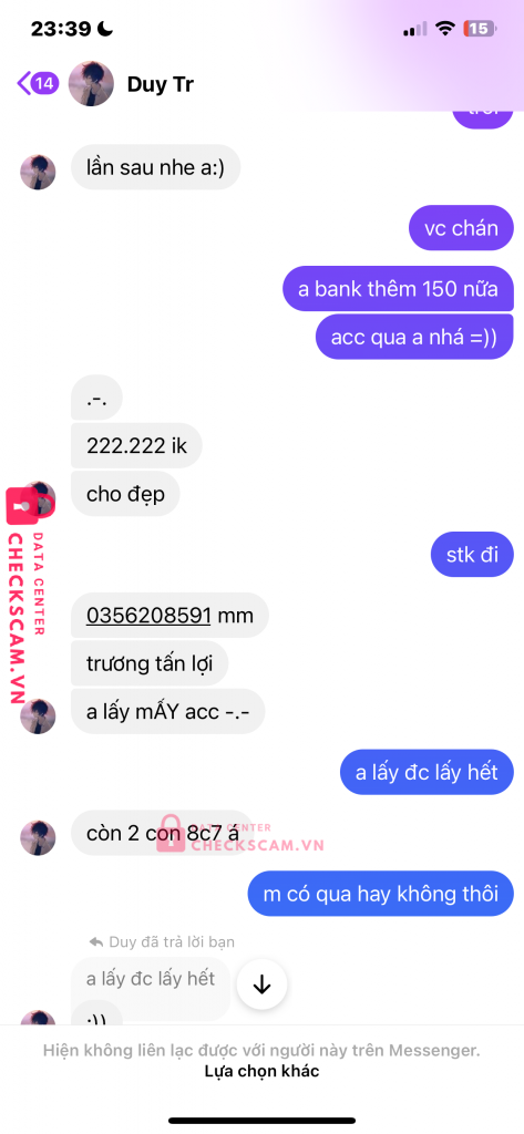 Scammer Alert: MoMo: 0356208591 CTK: Trương Tấn Lợi