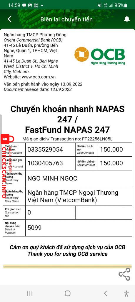 Scammer Alert: NGO MINH NGOC Reported: November 16, 2024 Scammer Information Full Name: NGO MINH NGOC Payment Gate: Vietcombank Payment Account: 1030405763 Category: Marketplace scams Source: Checkscam Evidence Files Report Description Lừa đảo part time job nhập mã đơn Mocha group Comments Your comment Add Comment No comments yet. Be the first to share your experience with this scammer.
