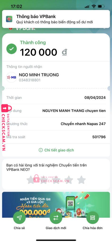 Scammer Alert: Ngo Minh Truong Reported: November 16, 2024 Scammer Information Full Name: Ngo Minh Truong Payment Gate: mb Payment Account: 0348318801 Category: Marketplace scams Source: Checkscam Evidence Files Report Description mua acc Tiktok chuyển khoản xong không trả acc Comments Your comment Add Comment No comments yet. Be the first to share your experience with this scammer.