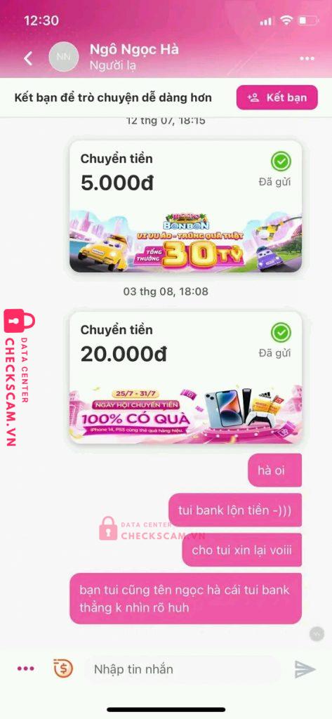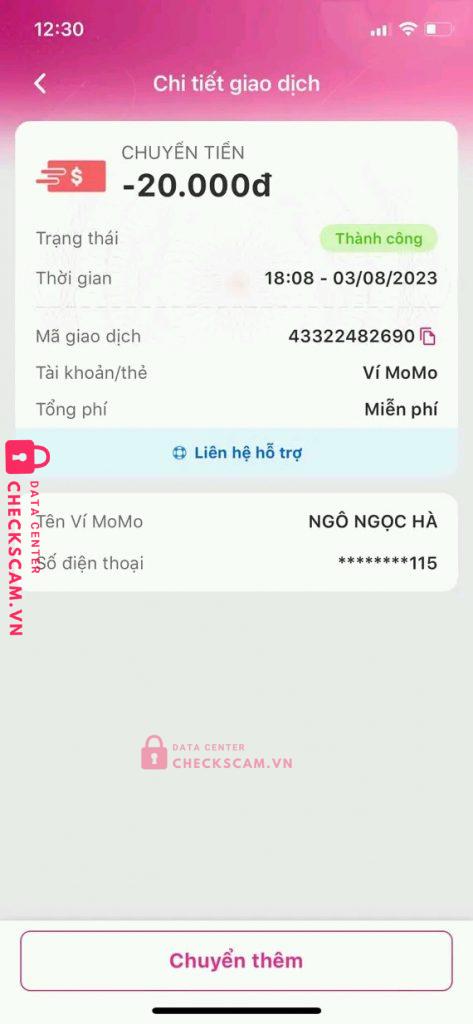 Scammer Alert: NGÔ NGỌC HÀ Reported: November 16, 2024 Scammer Information Full Name: NGÔ NGỌC HÀ Phone Number: 0819233115 Payment Gate: MOMO Payment Account: 0819233115 Category: Marketplace scams Source: Checkscam Evidence Files Report Description Scam 20k cx nuốt đói quá r ?? Comments Your comment Add Comment No comments yet. Be the first to share your experience with this scammer.
