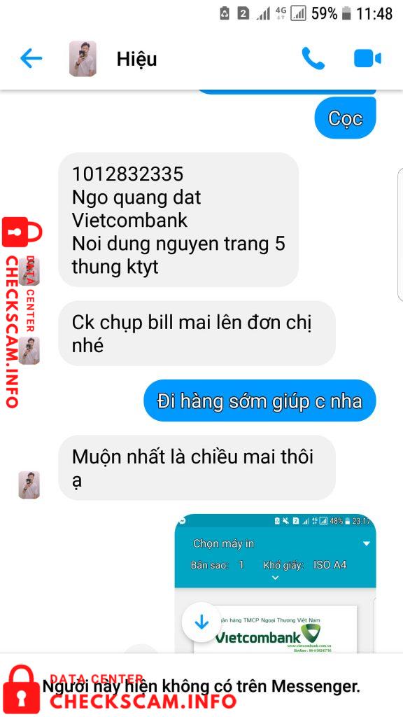 Scammer Alert: Ngo Quang Dat Reported: November 16, 2024 Scammer Information Full Name: Ngo Quang Dat Payment Gate: Vietcombank Payment Account: 1012832335 Category: Marketplace scams Source: Checkscam Evidence Files Report Description Cảnh báo lừa đảo khẩu trang. Cọc khóa fb. Có ai bị lừa không ạ Comments Your comment Add Comment No comments yet. Be the first to share your experience with this scammer.