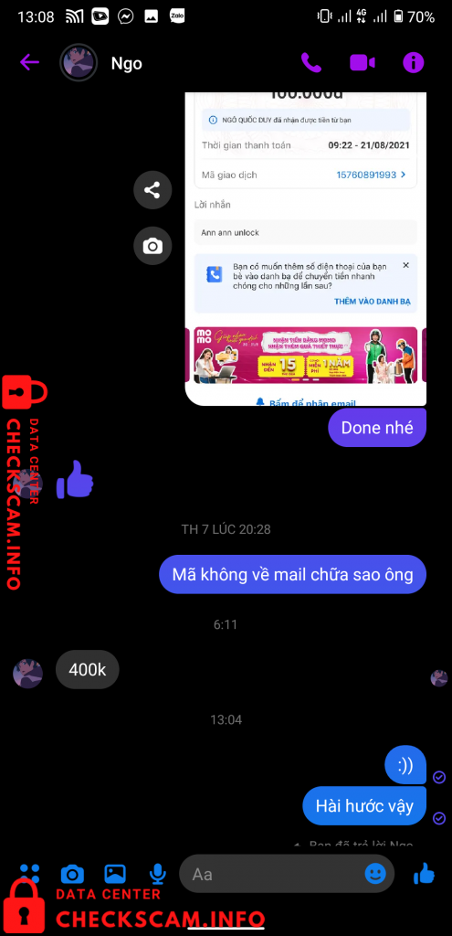 Bank xong mã không về mail lại đòi thêm 400 . Hiện giờ về lại dạng ban đầu