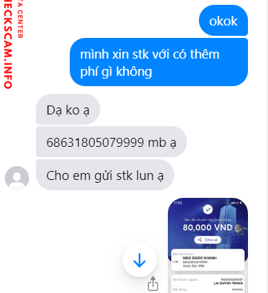 Scammer Alert: Ngô Quốc Khánh Reported: November 16, 2024 Scammer Information Full Name: Ngô Quốc Khánh Payment Gate: MB bank Payment Account: 68631805079999 Category: Marketplace scams Source: Checkscam Evidence Files Report Description Dạ vâng con cờ hò này scam của mình 80k truyện vanitas lúc đầu do có bảo quay truyện luôn nên dễ tin Comments Your comment Add Comment No comments yet. Be the first to share your experience with this scammer.