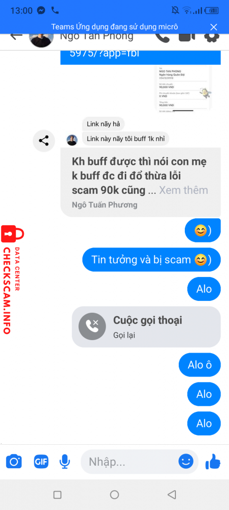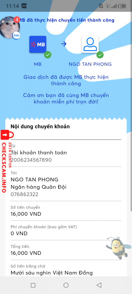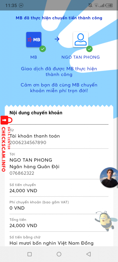 Scammer Alert: Ngo Tan Phong Reported: November 16, 2024 Scammer Information Full Name: Ngo Tan Phong Phone Number: 076862322 Payment Gate: MB Bank Payment Account: 076862322 Category: Marketplace scams Source: Checkscam Evidence Files Report Description Bán sub rate 16 1p done 1k onl không rep Comments Your comment Add Comment No comments yet. Be the first to share your experience with this scammer.