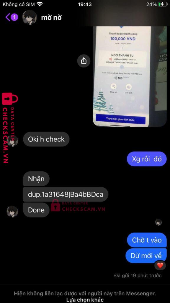 Scammer Alert: Ngo Thanh Tu Reported: March 7, 2025 Scammer Information Full Name: Ngo Thanh Tu Payment Gate: MB Bank Payment Account: 054577 Category: Marketplace scams Source: Checkscam Evidence Files Report Description Bán acc nhưng đưa 1 acc không có cái gì Comments Your comment Add Comment No comments yet. Be the first to share your experience with this scammer.