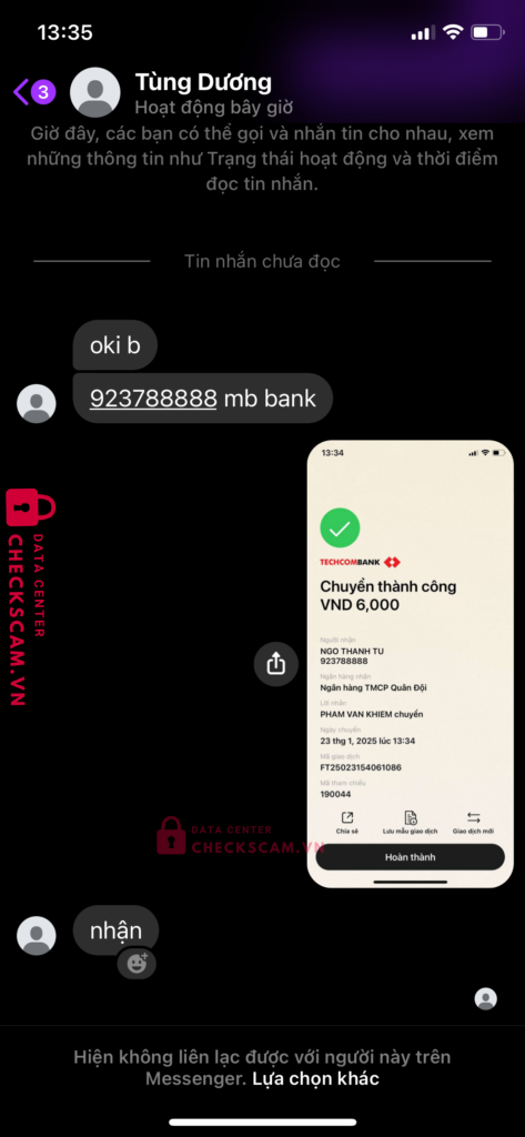 Scammer Alert: NGO THANH TU Reported: March 7, 2025 Scammer Information Full Name: NGO THANH TU Payment Gate: mb bank Payment Account: 923788888 Category: Marketplace scams Source: Checkscam Evidence Files Report Description này bán gts trong lq ck xong block Comments Your comment Add Comment No comments yet. Be the first to share your experience with this scammer.