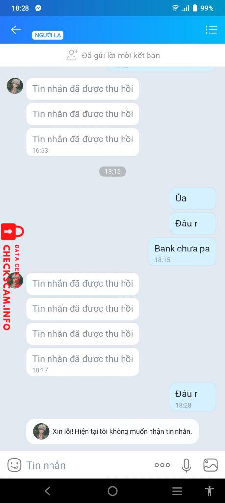 Scammer Alert: Ngo Thi Huong Reported: November 16, 2024 Scammer Information Full Name: Ngo Thi Huong Payment Gate: Mb bank Payment Account: 6618082008 Category: Marketplace scams Source: Checkscam Evidence Files Report Description Lừa đảo 22k tiền mua xu tds Comments Your comment Add Comment No comments yet. Be the first to share your experience with this scammer.