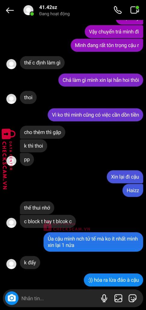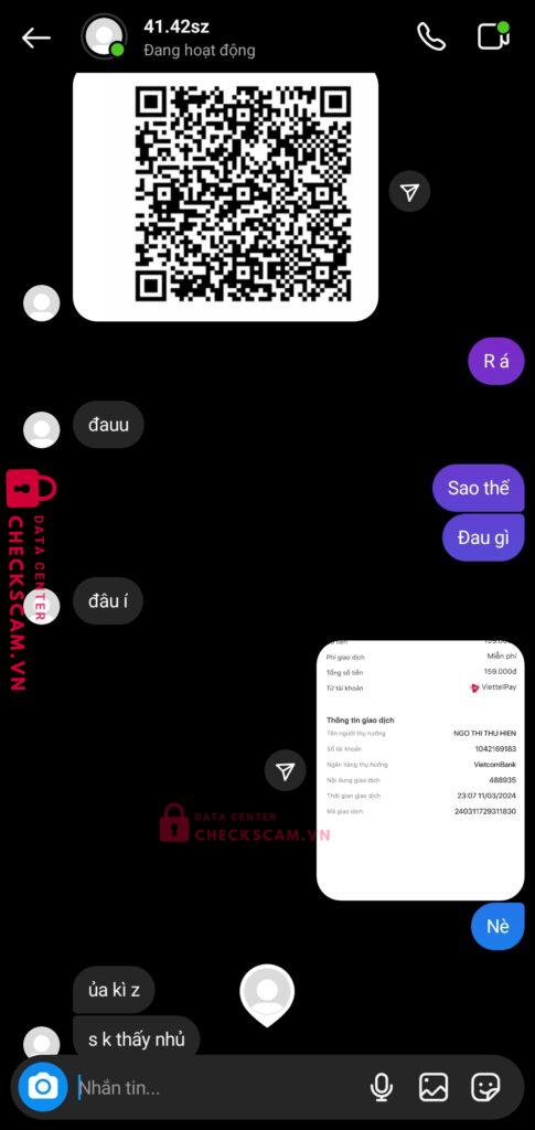 Scammer Alert: NGO THI THU HIEN Reported: November 16, 2024 Scammer Information Full Name: NGO THI THU HIEN Payment Gate: Vcb Payment Account: 1042169183 Category: Marketplace scams Source: Checkscam Evidence Files Report Description Scam tiền set kèo fwb, ck rồi nhưng vẫn đòi thêm Cùng là 1 với stk 19038926371019 Comments Your comment Add Comment No comments yet. Be the first to share your experience with this scammer.