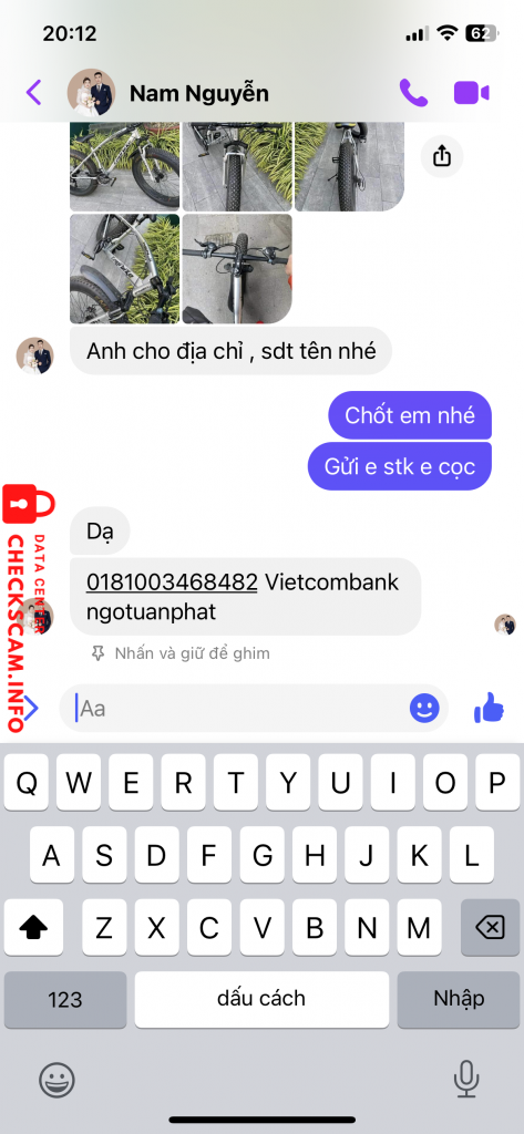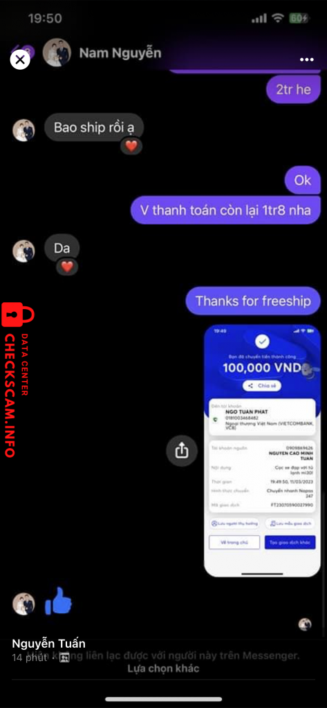Scammer Alert: NGO TUAN PHAT Reported: November 16, 2024 Scammer Information Full Name: NGO TUAN PHAT Payment Gate: Vietcombank Payment Account: 0181003468482 Category: Marketplace scams Source: Checkscam Evidence Files Report Description Người này lừa cọc mong ad cho lên để anh em tránh bị lừa Comments Your comment Add Comment No comments yet. Be the first to share your experience with this scammer.