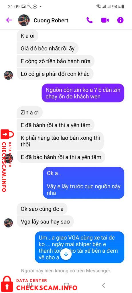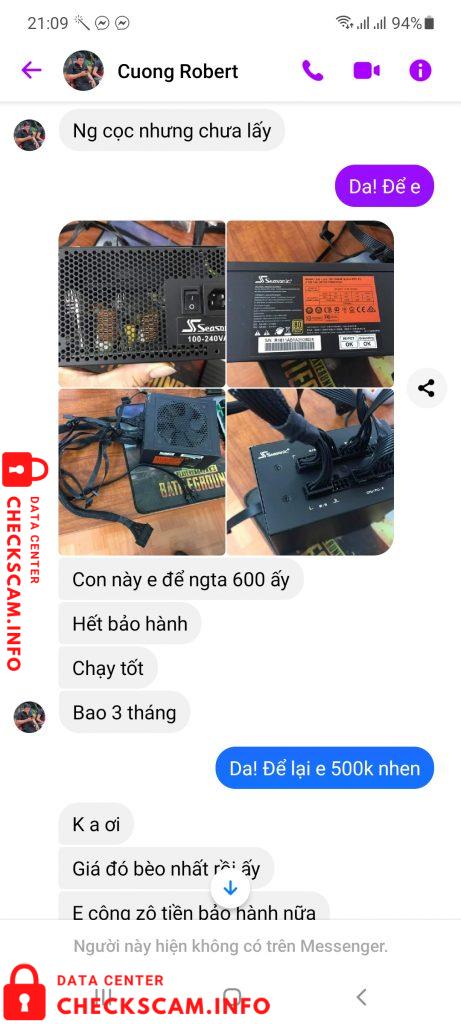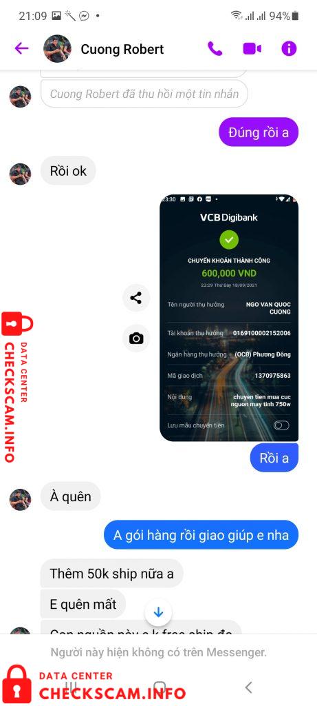 Scammer Alert: Ngo Van Quoc Cuong Reported: November 16, 2024 Scammer Information Full Name: Ngo Van Quoc Cuong Payment Gate: OCB Payment Account: 0169100002152006 Category: Marketplace scams Source: Checkscam Evidence Files Report Description Lừa tôi bán cục nguồn máy tính 750w xong kêu tôi chuyển khoản đủ rồi không gởi hàng cho tôi … Comments Your comment Add Comment No comments yet. Be the first to share your experience with this scammer.