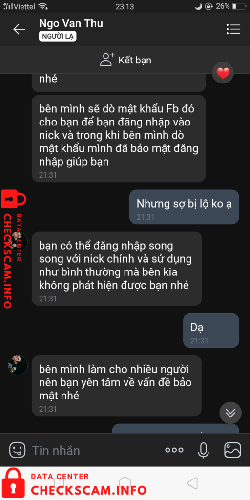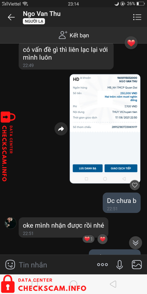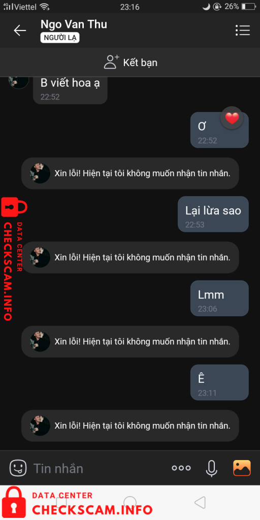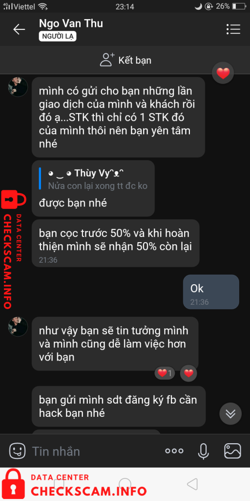 Scammer Alert: Ngô Văn Thu Reported: November 16, 2024 Scammer Information Full Name: Ngô Văn Thu Phone Number: 0878768548 Payment Gate: MBBANK Payment Account: 9600115032000 Category: Marketplace scams Source: Checkscam Evidence Files Report Description tôi đã bị lừa đảo mong ad xem xét zalo scam: 0878768548 SĐT scam: 0878768548 ( thuê bao ) Comments Your comment Add Comment No comments yet. Be the first to share your experience with this scammer.