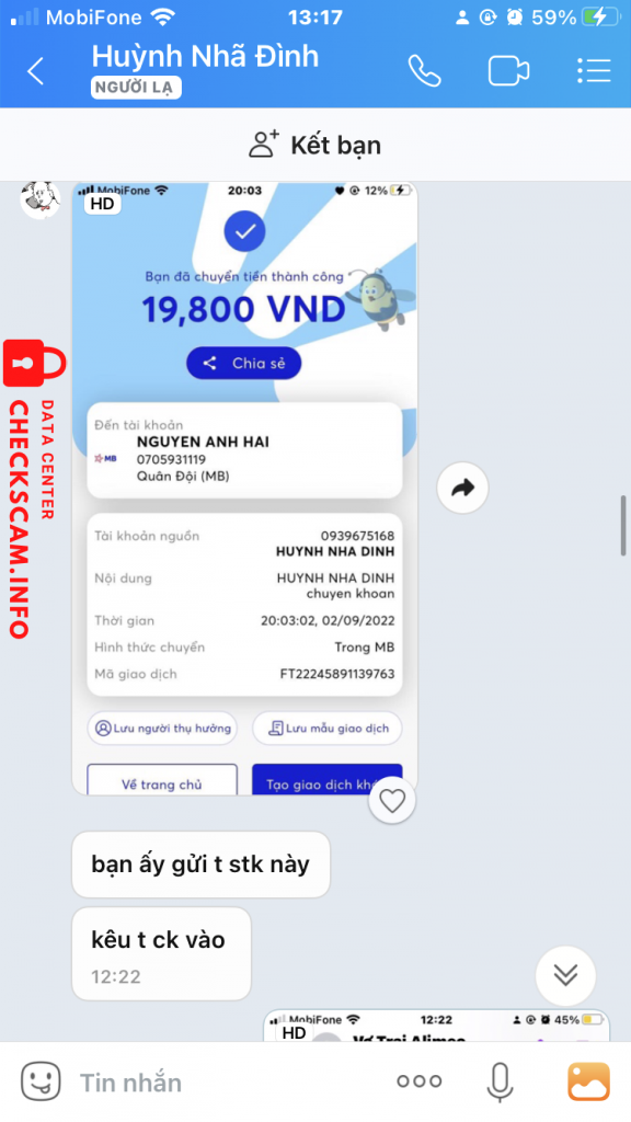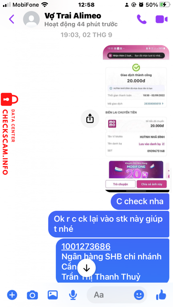 – Bạn lấy bill ck của t gửi cho page kêu ck lại vào stk của bạn ấy, rồi từ đó “lặn” luôn ( 2 ảnh cuối )