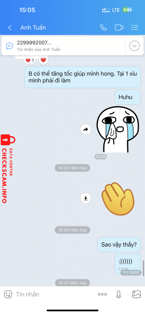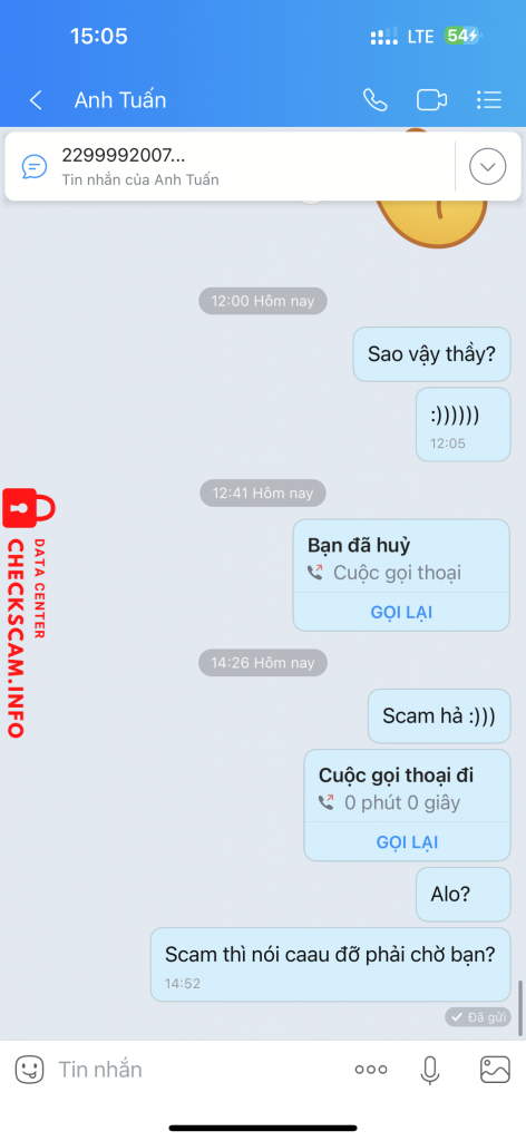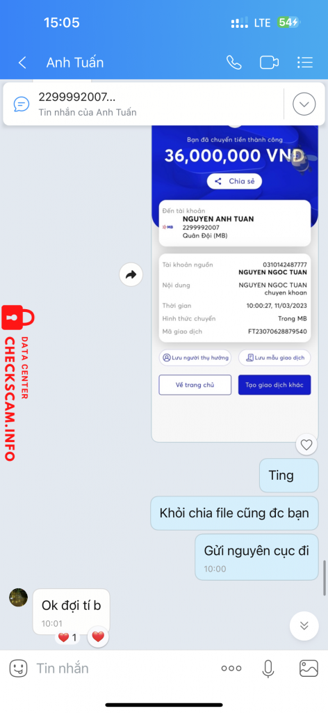 Scammer Alert: Nguyen anh tuan Reported: November 16, 2024 Scammer Information Full Name: Nguyen anh tuan Payment Gate: Mb bank Payment Account: 2299992007 Category: Marketplace scams Source: Checkscam Evidence Files Report Description Lừa đảo bán clone Comments Your comment Add Comment No comments yet. Be the first to share your experience with this scammer.