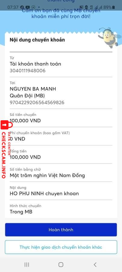 Scammer Alert: Nguyen Ba Manh Reported: November 16, 2024 Scammer Information Full Name: Nguyen Ba Manh Payment Gate: Mb bank Payment Account: 9704229206564569826 Category: Marketplace scams Source: Checkscam Evidence Files Report Description Lừa đảo mua hàng trên Facebook Marketplace bắt gửi cọc trước xong rồi chặn Comments Your comment Add Comment No comments yet. Be the first to share your experience with this scammer.