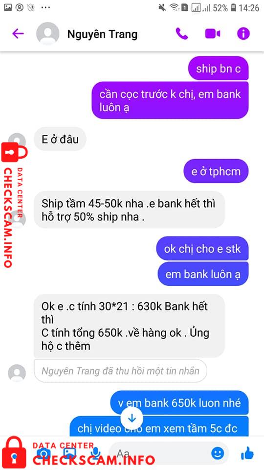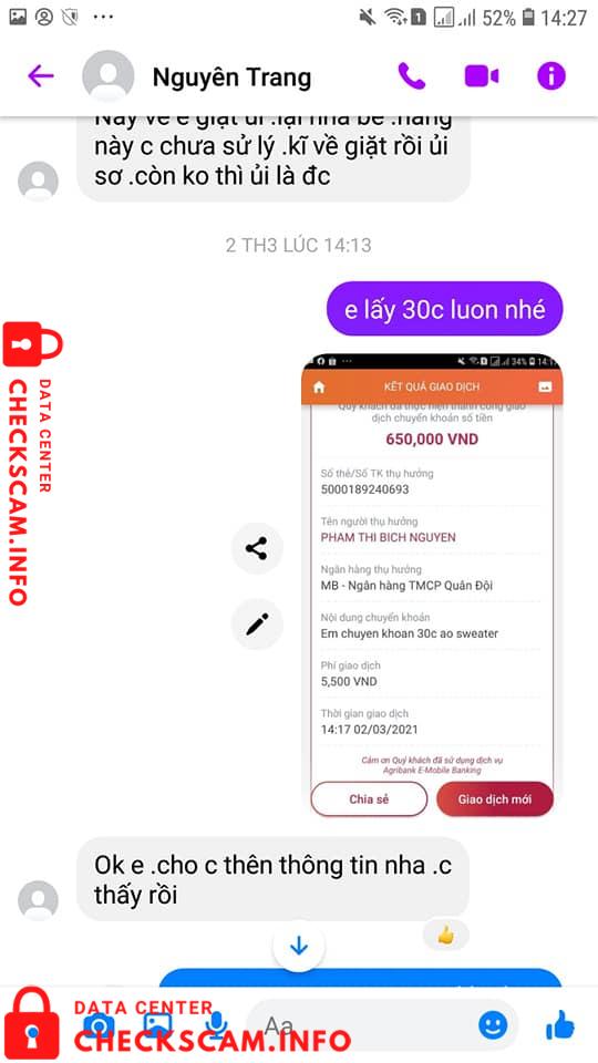 Chuyện là em có bị chị PHẠM THI BICH NGUYEN này lừa đảo 650k tiền hàng, cũng vì em NGU và tin nguời nên mới bị như thế này?, cũng sinh vien cần tiền nên bán hàng kiếm thêm mà con đó nó đi lừa đảo ăn tren đầu trên cổ nguời ta dị á
