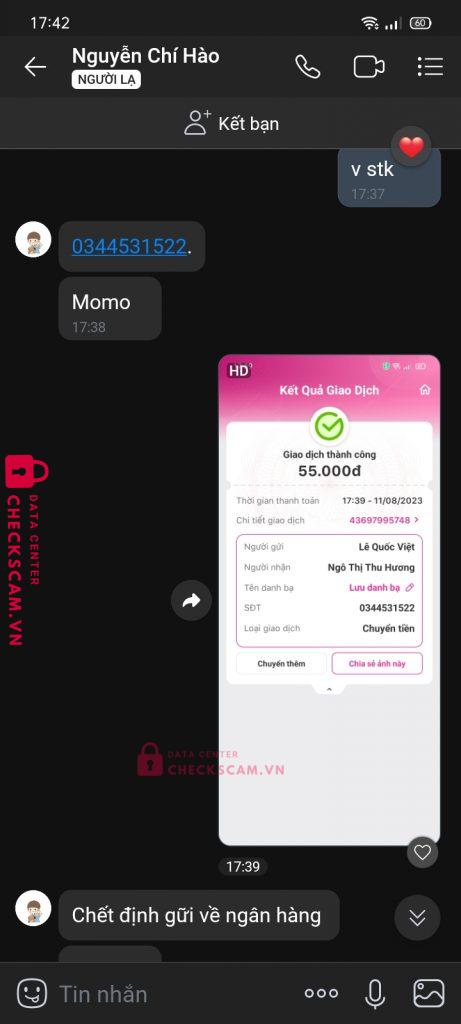 Scammer Alert: Nguyễn Chí Hào (Ngô Thị Thu Hương)