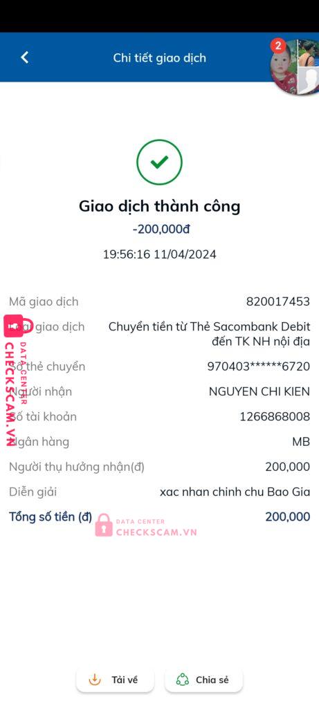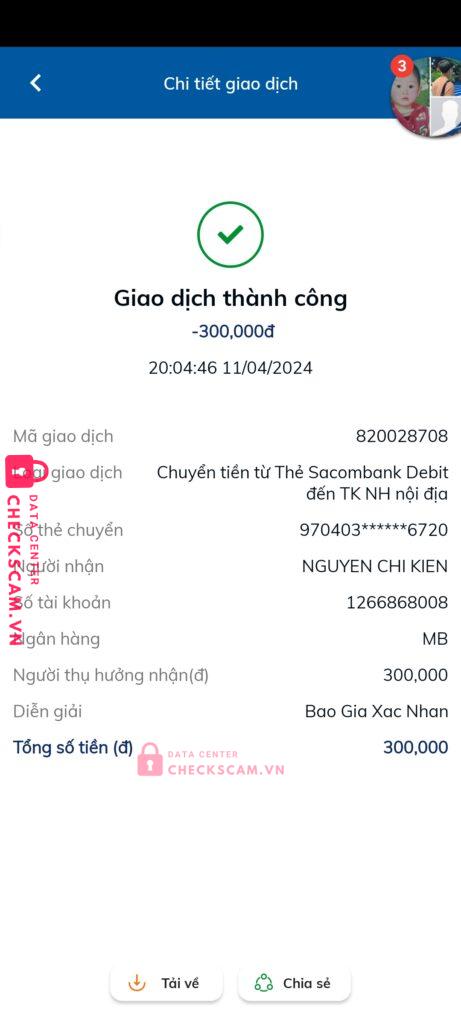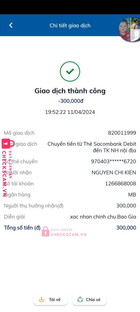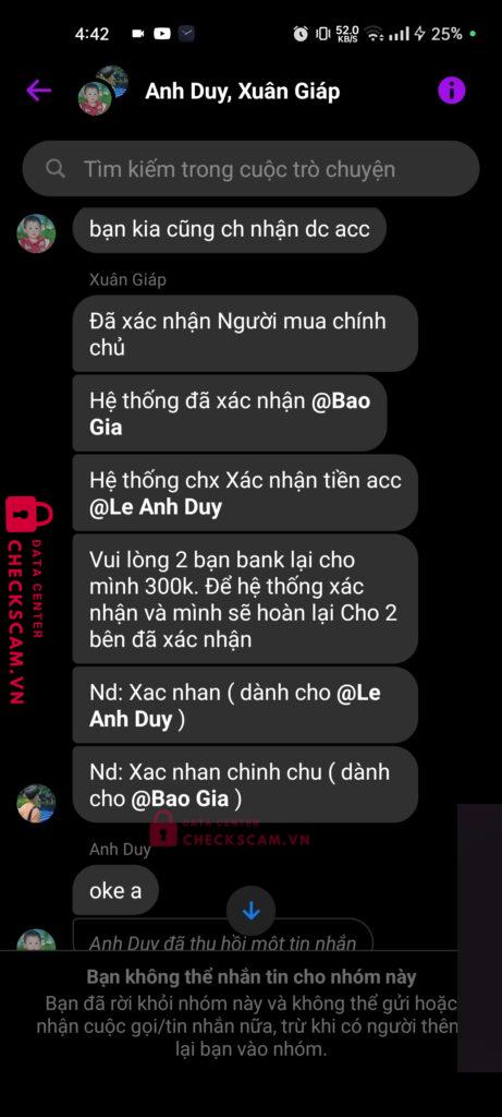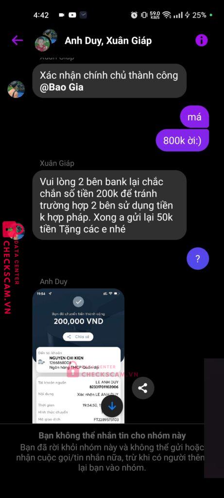 Scammer Alert: NGUYEN CHI KIEN Reported: November 16, 2024 Scammer Information Full Name: NGUYEN CHI KIEN Payment Gate: MB Bank Payment Account: 1266868008 Category: Marketplace scams Source: Checkscam Evidence Files Report Description scam gdtd Comments Your comment Add Comment No comments yet. Be the first to share your experience with this scammer.
