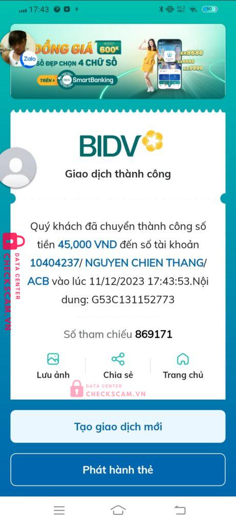 Scammer Alert: NGUYEN CHIEN THANG Reported: November 16, 2024 Scammer Information Full Name: NGUYEN CHIEN THANG Payment Gate: ACB Payment Account: 10404237 Category: Marketplace scams Source: Checkscam Evidence Files Report Description Lừa đảo Comments Your comment Add Comment No comments yet. Be the first to share your experience with this scammer.