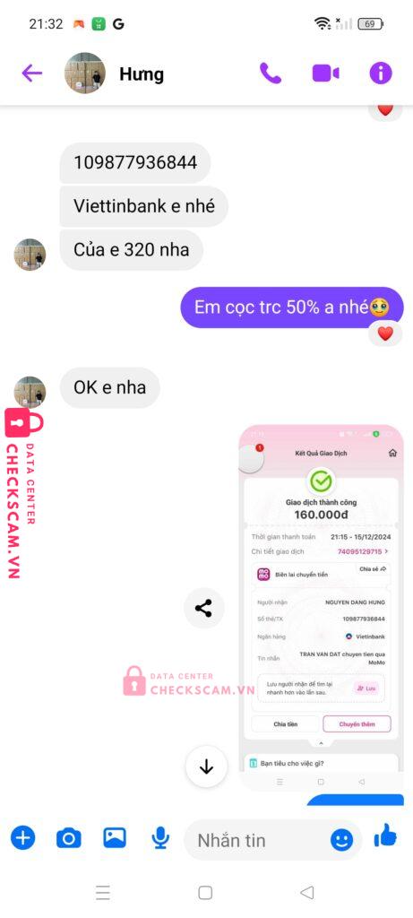 Scammer Alert: NGUYEN DANG HUNG Reported: March 7, 2025 Scammer Information Full Name: NGUYEN DANG HUNG Payment Gate: Vietinbank Payment Account: 109877936844 Category: Marketplace scams Source: Checkscam Evidence Files Report Description Lừa đảo chiếm đoạt tài sản . Bắt đóng cọc baby three . Comments Your comment Add Comment No comments yet. Be the first to share your experience with this scammer.