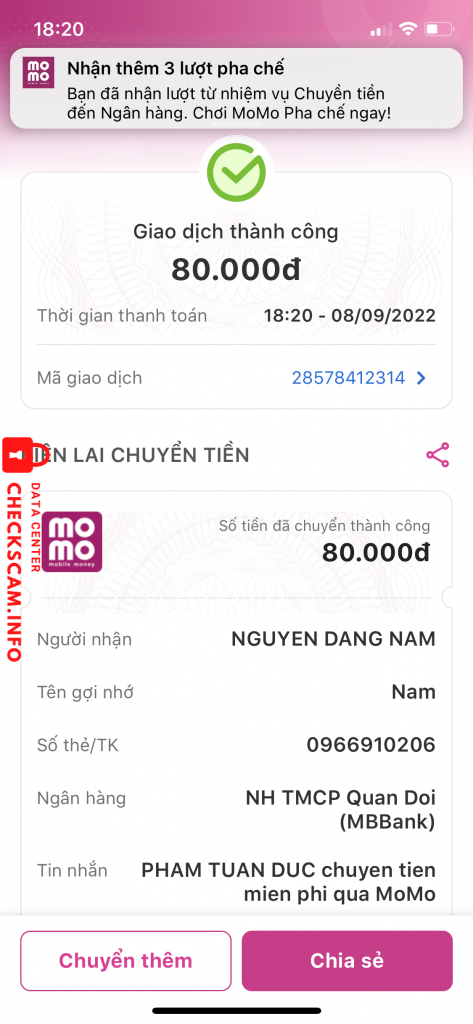 Scammer Alert: Nguyễn Đặng Nam Reported: November 16, 2024 Scammer Information Full Name: Nguyễn Đặng Nam Payment Gate: mb bank Payment Account: 0966910206 Category: Marketplace scams Source: Checkscam Evidence Files Report Description gửi vào mb bank nhận tiền xong block Comments Your comment Add Comment No comments yet. Be the first to share your experience with this scammer.