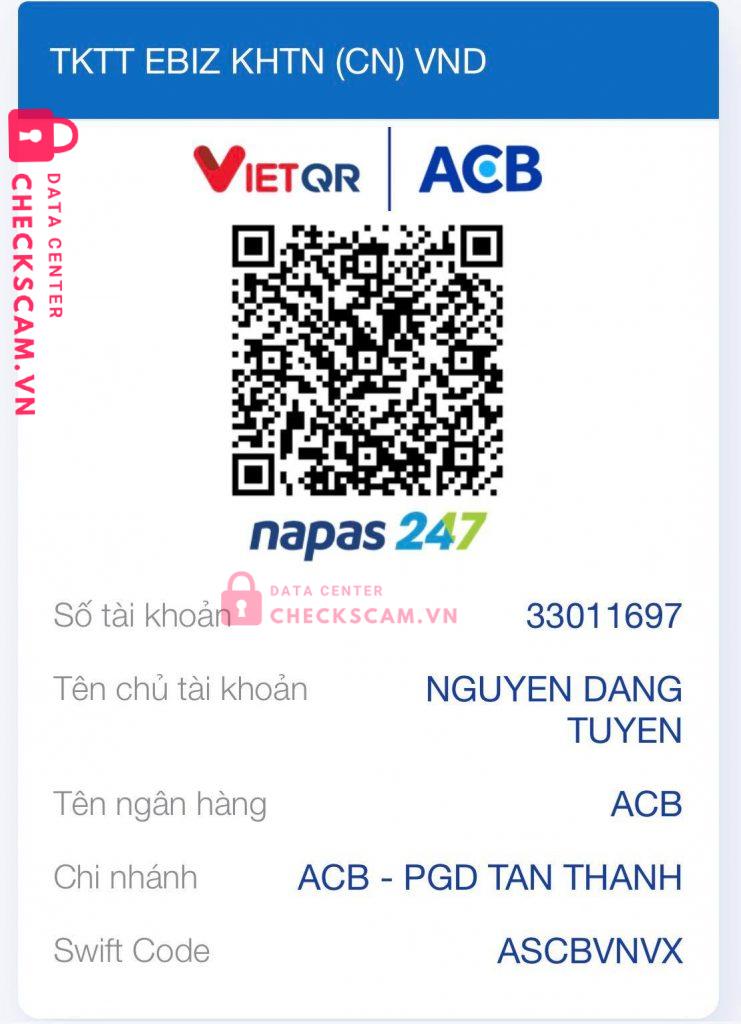 Scammer Alert: Nguyễn Đăng Tuyên Reported: November 16, 2024 Scammer Information Full Name: Nguyễn Đăng Tuyên Phone Number: 0787436858 Payment Gate: Acb Payment Account: 33011697 Category: Marketplace scams Source: Checkscam Evidence Files Report Description Lừa đảo tiền cọc 100k của sony nex 7 Comments Your comment Add Comment No comments yet. Be the first to share your experience with this scammer.