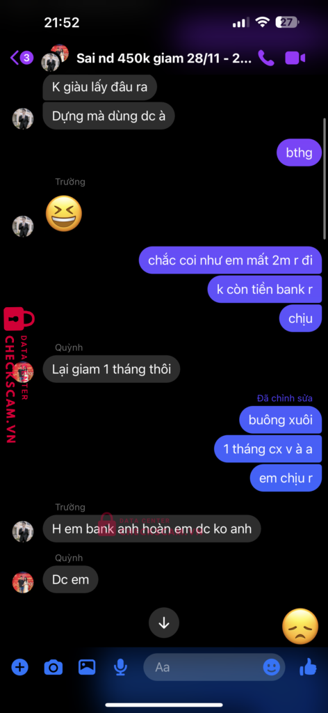 Scammer Alert: Nguyen Dinh Quang Reported: March 7, 2025 Scammer Information Full Name: Nguyen Dinh Quang Payment Gate: BIDV Payment Account: 8874150502 Category: Marketplace scams Source: Checkscam Evidence Files Report Description chuyển khoản mua acc sai nd cần hoàn tiền nó kéo lâu h lên 2m5 coi như mất r Comments Your comment Add Comment No comments yet. Be the first to share your experience with this scammer.