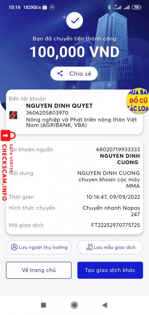 Scammer Alert: Nguyễn Đình Quyết Reported: November 16, 2024 Scammer Information Full Name: Nguyễn Đình Quyết Payment Gate: Agribank Payment Account: 3606205803970 Category: Marketplace scams Source: Checkscam Evidence Files Report Description Bán hàng lừa đảo Comments Your comment Add Comment No comments yet. Be the first to share your experience with this scammer.
