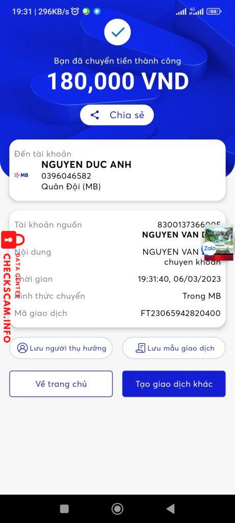 Scammer Alert: NGUYEN DUC ANH Reported: November 16, 2024 Scammer Information Full Name: NGUYEN DUC ANH Phone Number: 0396046582 Payment Gate: MBank Payment Account: 0396046582 Category: Marketplace scams Source: Checkscam Evidence Files Report Description Lừa đảo bán rồi back account Comments Your comment Add Comment No comments yet. Be the first to share your experience with this scammer.