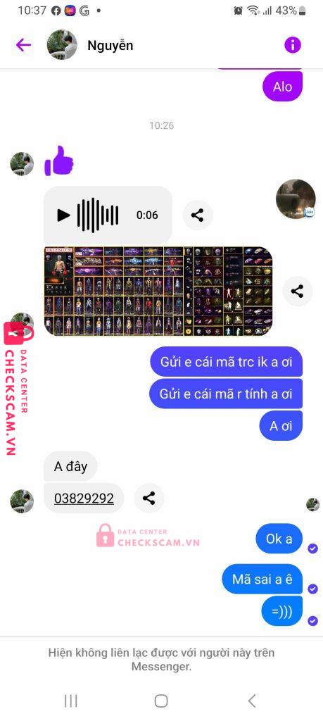 Scammer Alert: NGUYEN DUC ANH Reported: November 16, 2024 Scammer Information Full Name: NGUYEN DUC ANH Phone Number: 0389727856 Payment Gate: ACB Payment Account: 34586967 Category: Marketplace scams Source: Checkscam Evidence Files Report Description Lừa đảo bán acc ff giá rẻ Comments Your comment Add Comment No comments yet. Be the first to share your experience with this scammer.