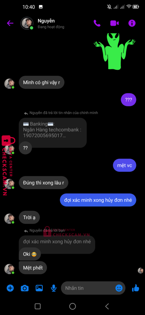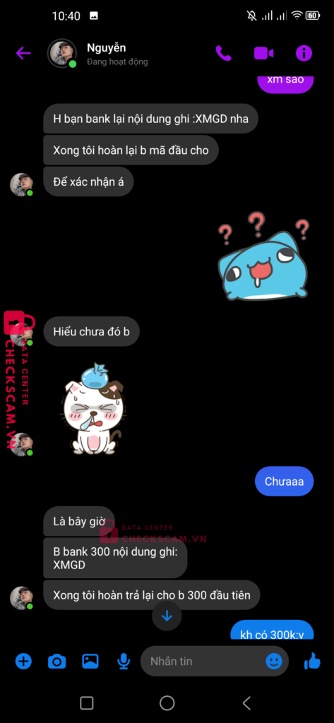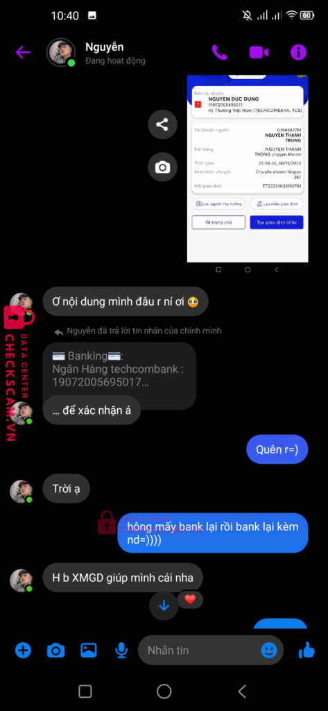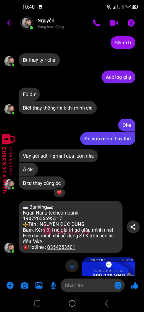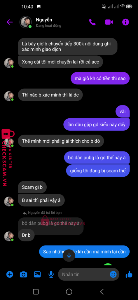 Lừa đảo mua bán acc Pubg, mình chuyển tiền cho nó xong thì nó bảo cần nội dung, kêu chuyển thêm 300 để xác minh, nghi scam nên check, hoá ra là vậy
