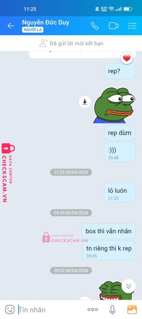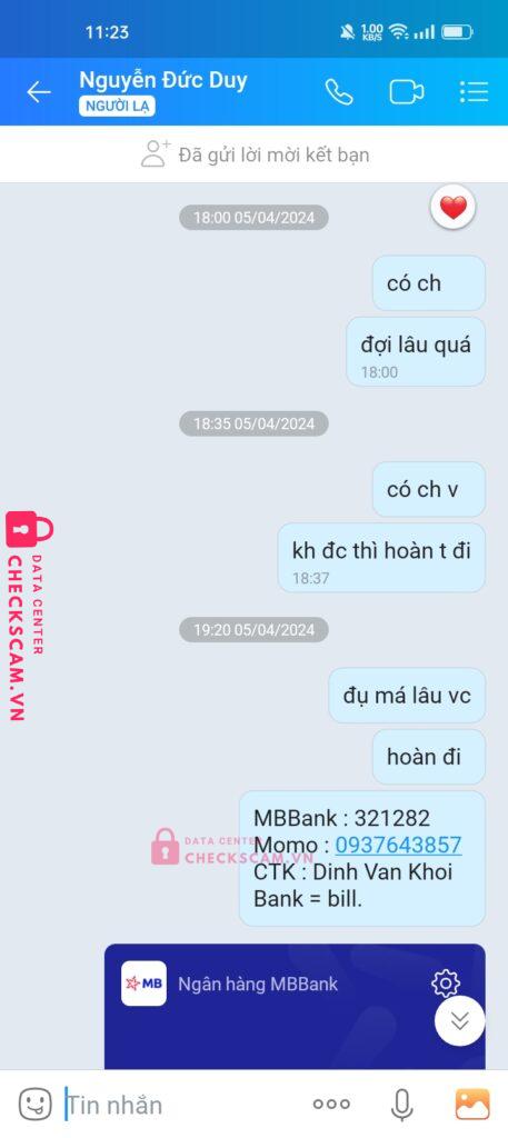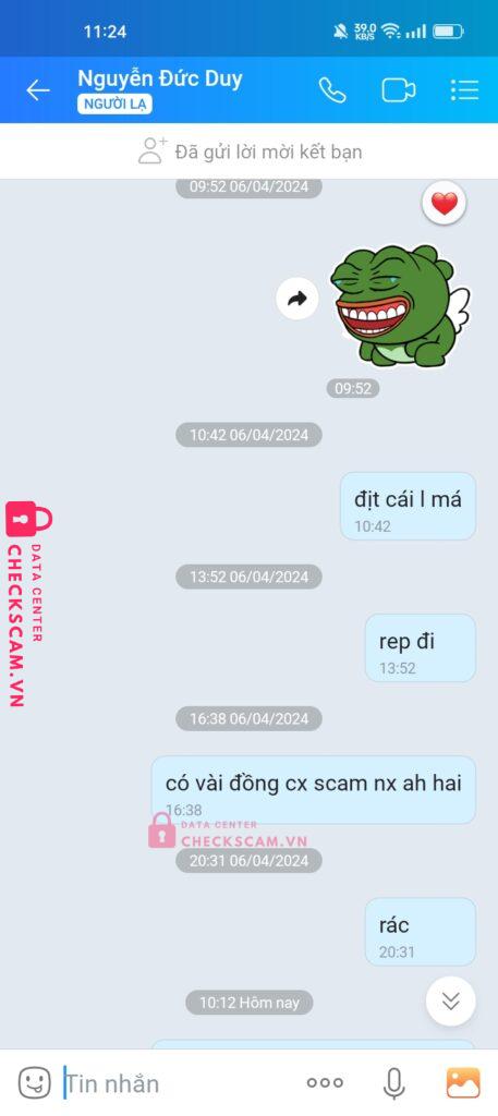 Scammer Alert: NGUYEN DUC DUY Reported: November 16, 2024 Scammer Information Full Name: NGUYEN DUC DUY Payment Gate: MB BANK Payment Account: 345612348888 Category: Marketplace scams Source: Checkscam Evidence Files Report Description mua id cài locket gold nhắn tin 2 ngày không rep ngày thứ 3 kick luôn khỏi nhóm, ae gặp thì né Comments Your comment Add Comment No comments yet. Be the first to share your experience with this scammer.