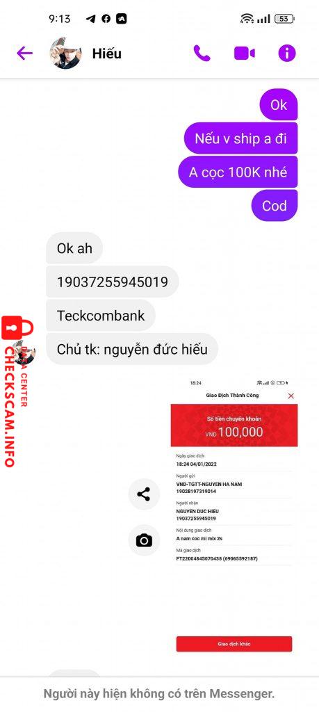 Scammer Alert: Nguyen Duc Hieu Reported: November 16, 2024 Scammer Information Full Name: Nguyen Duc Hieu Payment Gate: TECHCOMBANK Payment Account: 19037255945019 Category: Marketplace scams Source: Checkscam Evidence Files Report Description Đăng bán điện thoại bị hư một số chức năng nhưng vẫn còn hoạt động được. Sau đó dụ người bán chuyển khoản cọc sau đó block người chuyển. Comments Your comment Add Comment No comments yet. Be the first to share your experience with this scammer.