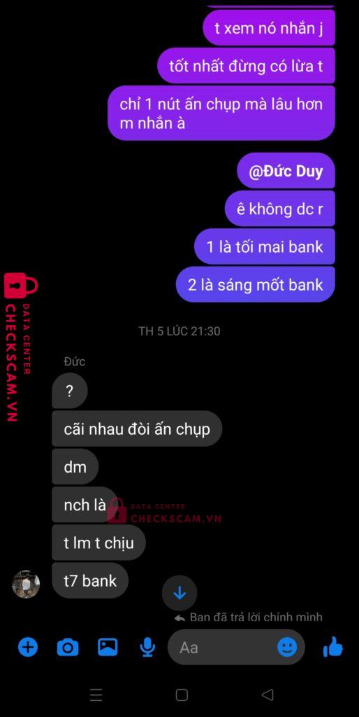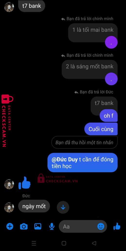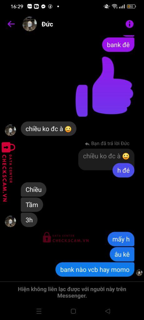 Scammer Alert: Nguyễn Đức Huy Reported: November 16, 2024 Scammer Information Full Name: Nguyễn Đức Huy Payment Gate: Mb Bank Payment Account: 3177771802 Category: Marketplace scams Source: Checkscam Evidence Files Report Description Tôi mua acc roblox của nó gdtg nhưng sau đó back acc và nói là hoàn tiền nhưng đến hẹn rồi lock Sđt của nó: 0985389623 Comments Your comment Add Comment No comments yet. Be the first to share your experience with this scammer.