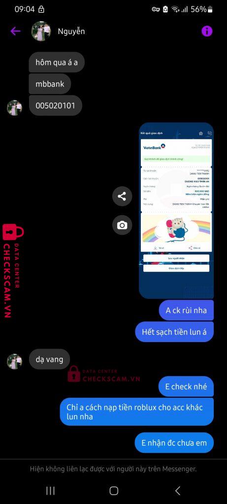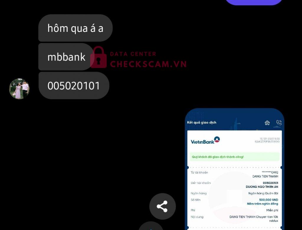 Scammer Alert: Nguyễn Đức Long Reported: November 16, 2024 Scammer Information Full Name: Nguyễn Đức Long Payment Gate: MB bank Payment Account: 005020101 Category: Marketplace scams Source: Checkscam Evidence Files Report Description Lừa đảo mua acc roblox blox fruit Comments Your comment Add Comment No comments yet. Be the first to share your experience with this scammer.