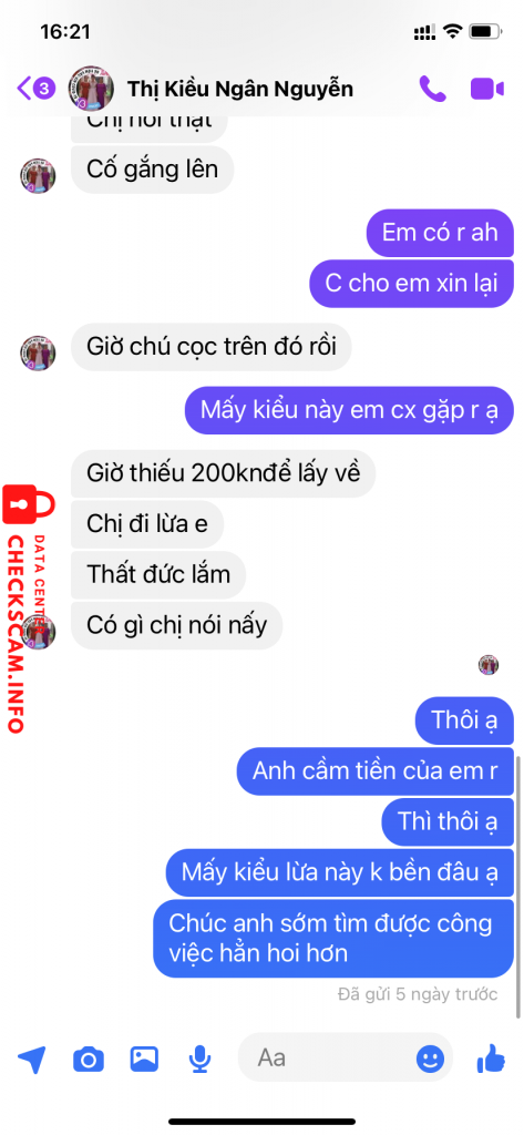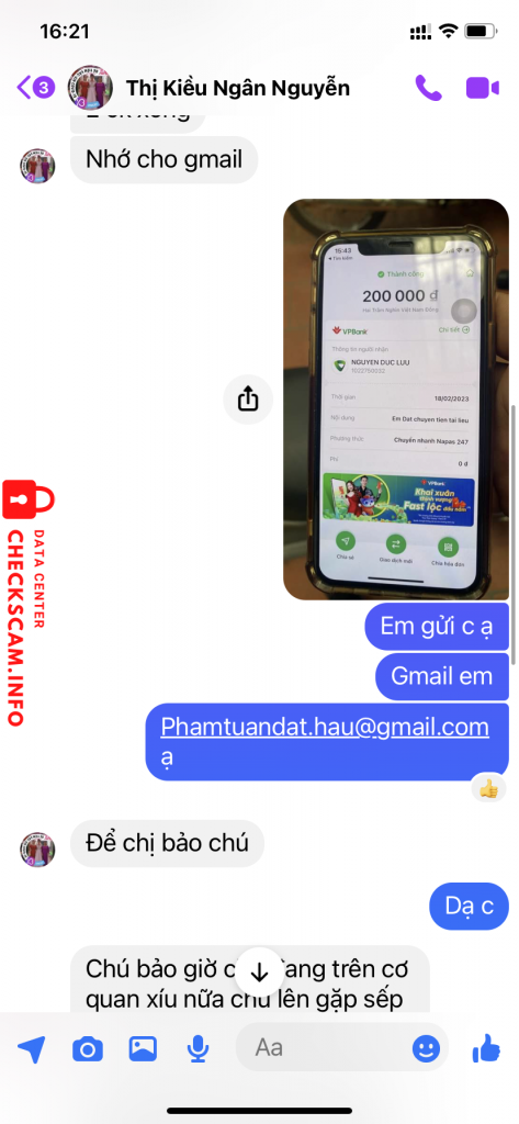 Scammer Alert: Nguyen Duc Luu Reported: November 16, 2024 Scammer Information Full Name: Nguyen Duc Luu Payment Gate: Vietcombank Payment Account: 1022750032 Category: Marketplace scams Source: Checkscam Evidence Files Report Description Lừa đảo tài liệu thi viên chức Comments Your comment Add Comment No comments yet. Be the first to share your experience with this scammer.