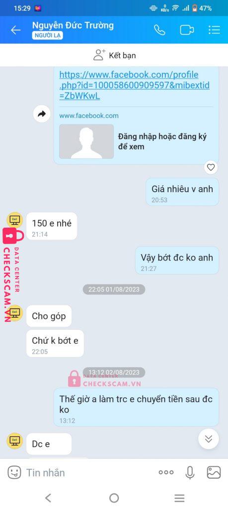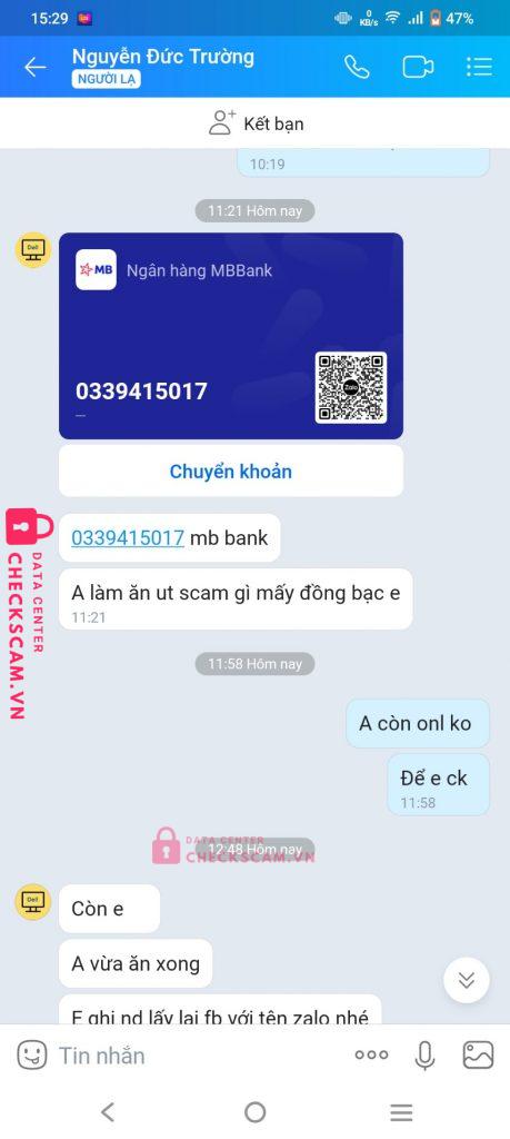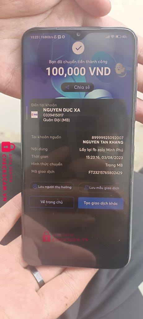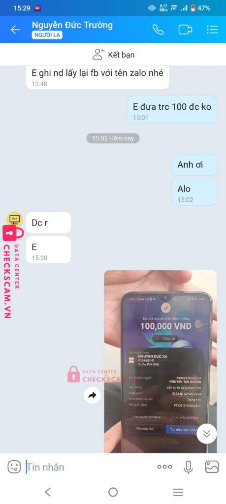 Scammer Alert: NGUYEN DUC XA Reported: November 16, 2024 Scammer Information Full Name: NGUYEN DUC XA Phone Number: 0339415017 Payment Gate: MB Bank Payment Account: 0339415017 Category: Marketplace scams Source: Checkscam Evidence Files Report Description Bn e bị hack acc face nên nhờ người trong ảnh để lấy lại tk nhưng sau khi chuyển 100k thì bị chặn và ko có cách để liên hệ lại Comments Your comment Add Comment R Reina Friesen 6 months ago Mình cũng bị y chang haizzz
