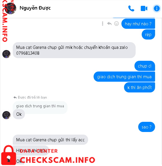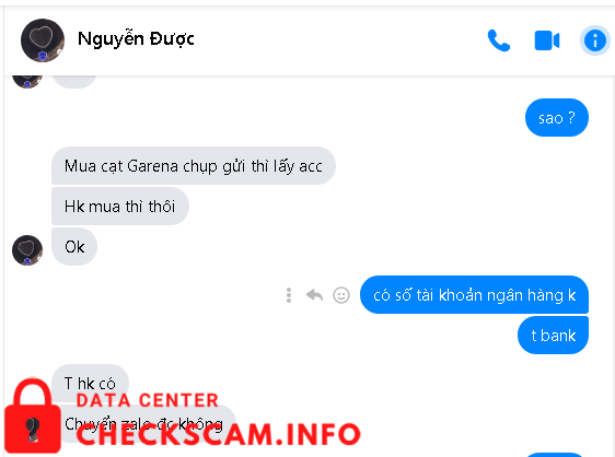 Scammer Alert: Nguyễn Được Reported: November 16, 2024 Scammer Information Full Name: Nguyễn Được Phone Number: 0796813408 Payment Gate: 0796813408 Payment Account: 0796813408 Category: Marketplace scams Source: Checkscam Evidence Files Report Description scam đòi chụp thẻ gdtg thì không chịu em đăng cái này lên để mong mọi người kịp thời né những thằng này ra Comments Your comment Add Comment No comments yet. Be the first to share your experience with this scammer.