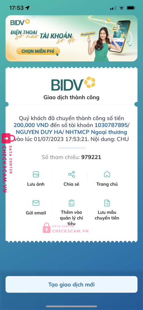 Scammer Alert: Nguyễn duy hà Reported: November 16, 2024 Scammer Information Full Name: Nguyễn duy hà Payment Gate: Vietcombank Payment Account: 1030787895 Category: Marketplace scams Source: Checkscam Evidence Files Report Description Giả mạo facebook rồi hỏi mượn tiền Comments Your comment Add Comment No comments yet. Be the first to share your experience with this scammer.